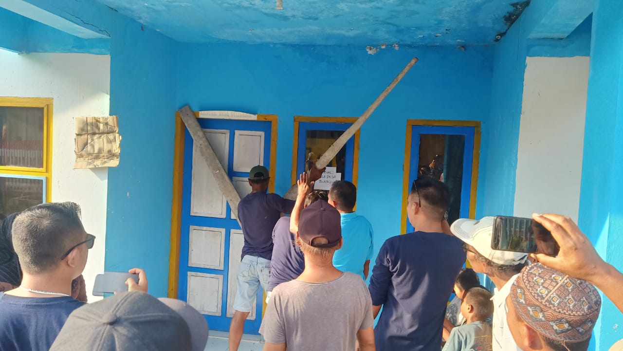 Sementara warga lain menyampaikan, jika tuntutan kami ini tidak diindahkan maka kami tidak akan membuka penyegelan itu sampai ada kepala desa baru, yang pasti kami tidak mau lagi Laudin menjadi Kades.