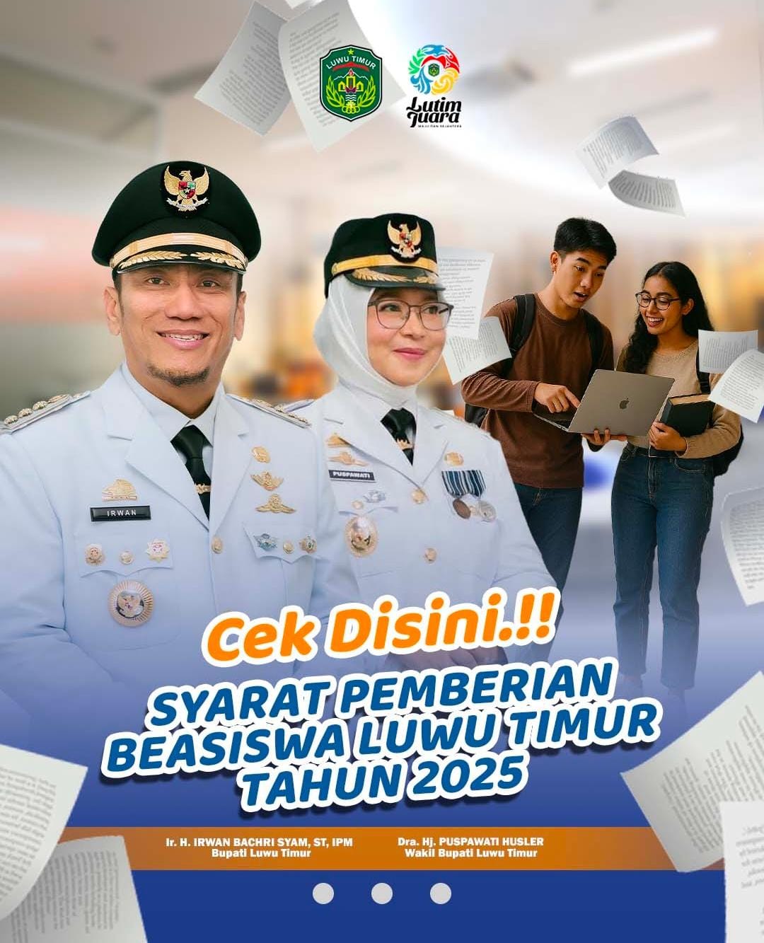 INPUTRAKYAT_LUTIM,–Kartu sakti Luwu Timur pintar Ibas – Puspa jawab kebutuhan Mahasiswa. Kabar baik, Jumat, 8 Agustus 2025, Pemda Lutim membuka pendaftaran beasiswa.