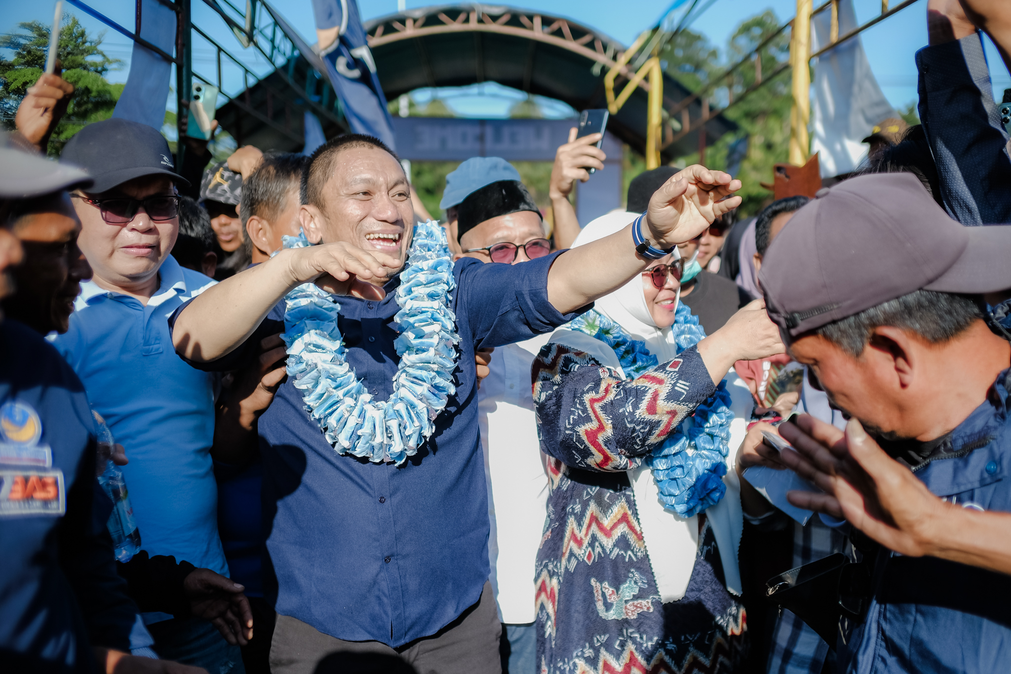 INPUTRAKYAT_LUTIM,–Bacalon Bupati dan Wakil Bupati Irwan Bachri Syam ( Ibas ) dan Hj Puspawati Husler ( Puspa ) menghadiri acara deklarasi pengukuhan tim kampanye Ibas – Puspa Kecamatan Burau, Luwu Timur.