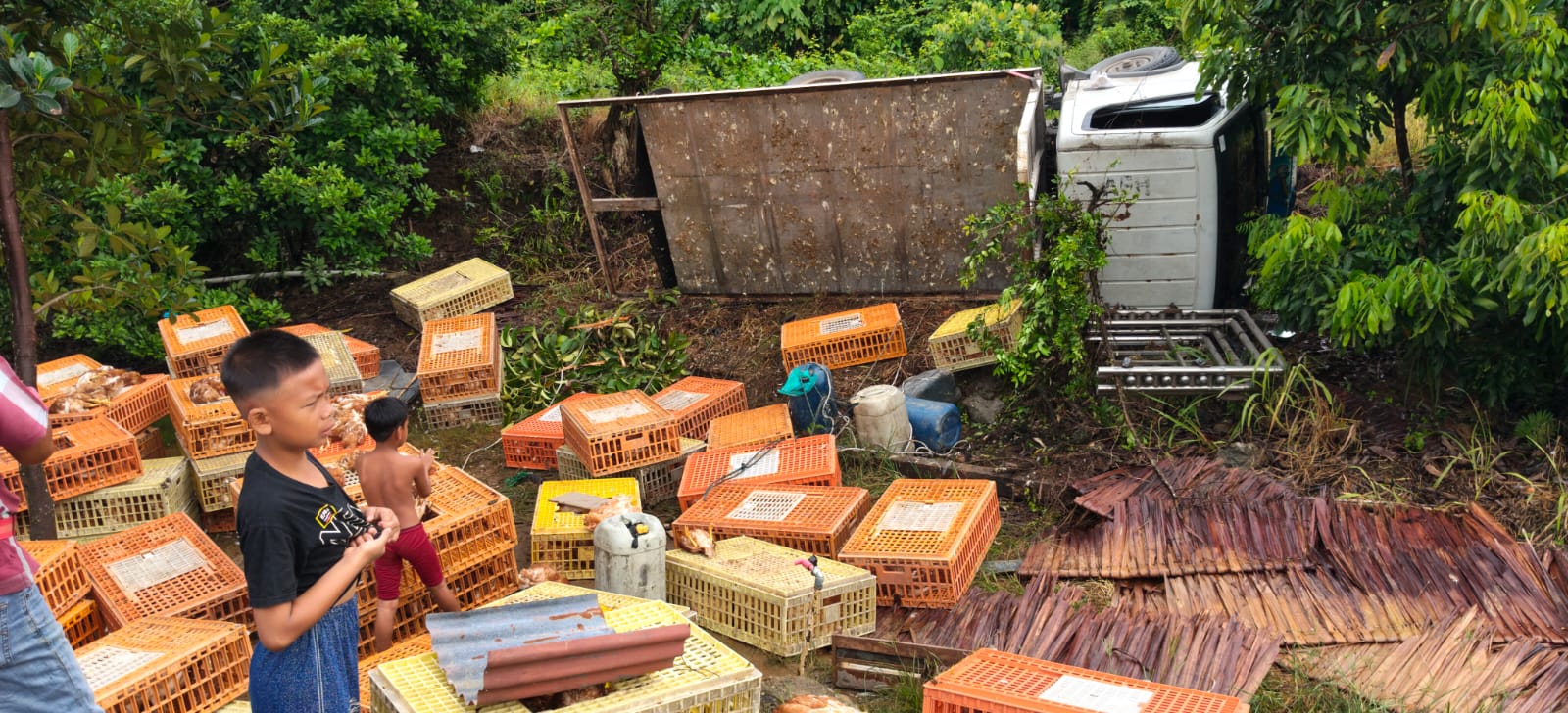 “Sering terjadi kecelakaan di tikungan km 5 ini, pernah mobil trailer Vale kecelakaan, mobil pribadi, dan tadi pagi lagi mobil pemuat ayam,” ungkap Jasman, warga setempat.